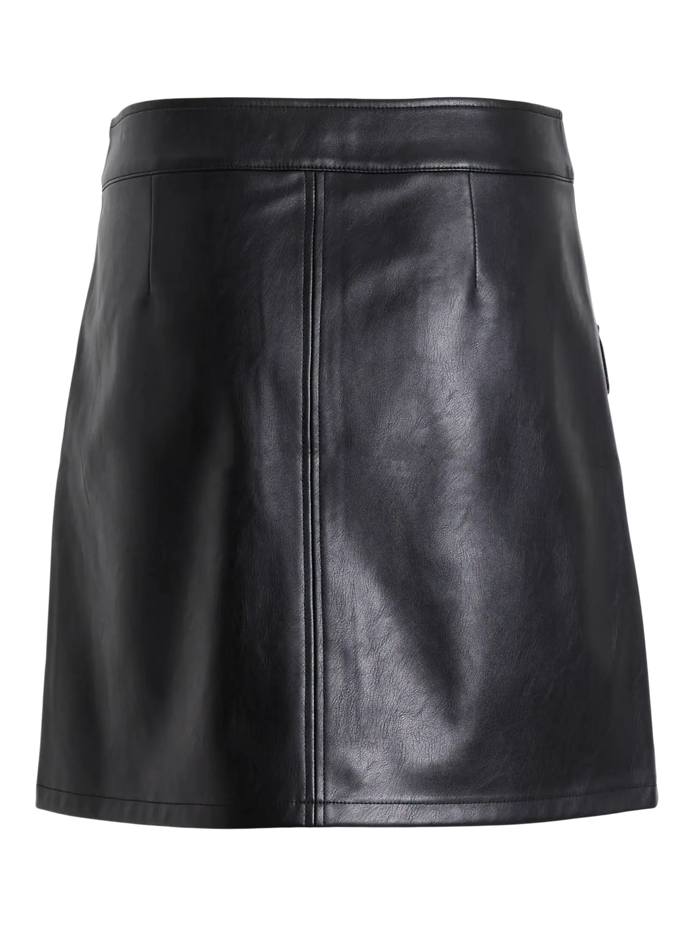 Falda mini polipiel negra con bolsillos plastón en el frontal, tiro alto ...es un poquito elástica.. muy cómoda